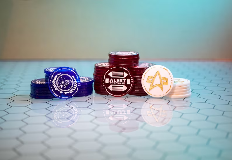 STRATA STRIKE | Set of 46 Tokens, (25) Threat, (15) Momentum, (6) Determination | Star Trek Adventures Tabletop RPG